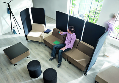 Wall In to system siedzisk modułowych o prostych geometrycznych liniach, które mogą mieć zastosowanie w przestronnych, nowoczesnych wnętrzach jak na przykład hole gmachów użyteczności publicznej, recepcje, poczekalnie, open space’y.
